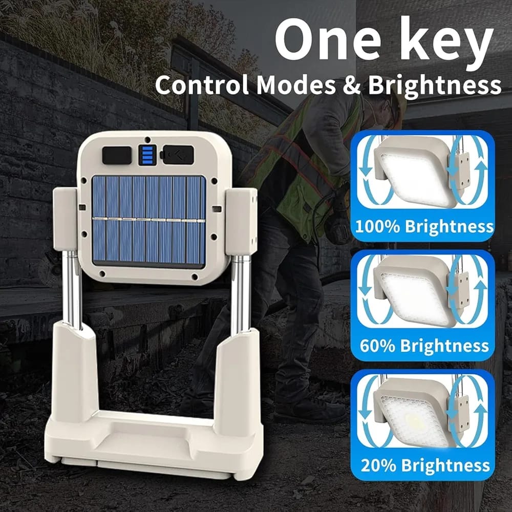 الخلاصة: كشاف قوي، شمسي، وعملي… إضاءة احترافية بدون أسلاك، جاهزة لكل مغامرة وكل مهمة.