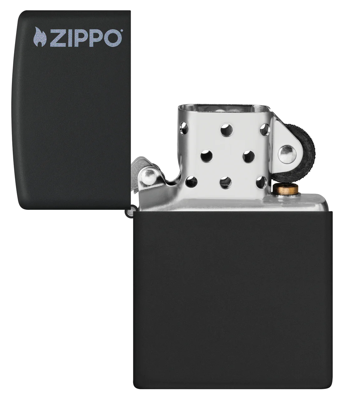 Zippo Black Matte بتشطيب أسود مطفّي أنيق، مزينة بشعار Zippo الكلاسيكي، تصميم بسيط وقوي يناسب كل الأذواق وكل الأوقات.