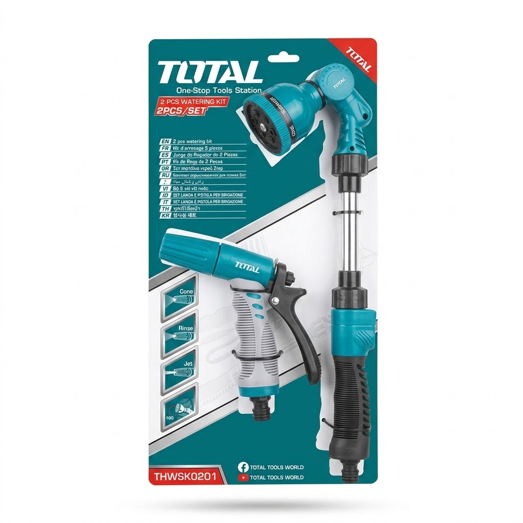 مسدس رشاش متعدد الأوضاع: يتضمن فوهة رش (Nozzle) قابلة للتعديل لعدة وضعيات (مثل الرذاذ اللطيف للنباتات الحساسة أو الدفع القوي للتنظيف)، مما يجعله منتجاً متعدد الاستخدامات.