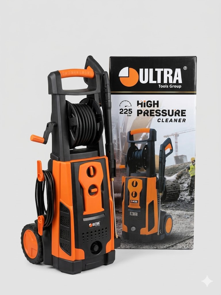 قوة ضغط هائلة (225 بار): يوفر ضغطاً عالياً جداً يجعل عملية التنظيف أسرع وأكثر فعالية، وهو مثالي لإزالة الأوساخ المستعصية والدهون من السيارات، الساحات، والجدران.